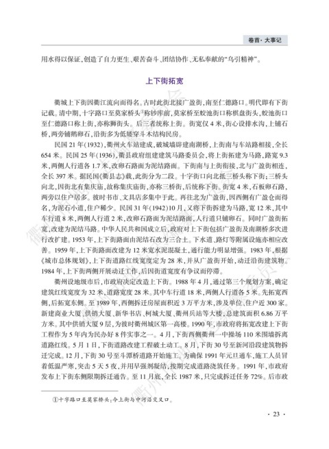 善遥 1959 年袁上下街路面改建为 12 米宽水泥混凝土袁通行能力明显增强遥 1983 年袁根据