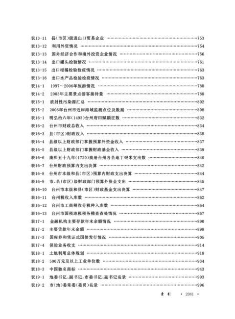 表16-2 台州市财政总收入 ……………………………………………………………………834