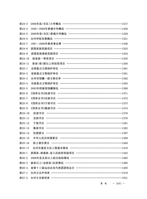 表24-3 2006年县(市区)小学概况 ……………………………………………………………1317