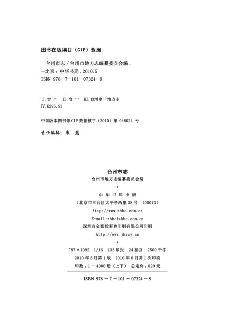 Ⅰ.台 … Ⅱ.台 … Ⅲ.台州市—地方志