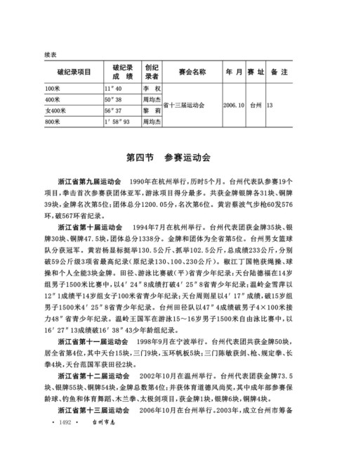 浙江省第十一届运动会 1998年9月在宁波举行。台州代表团共获金牌50块,
