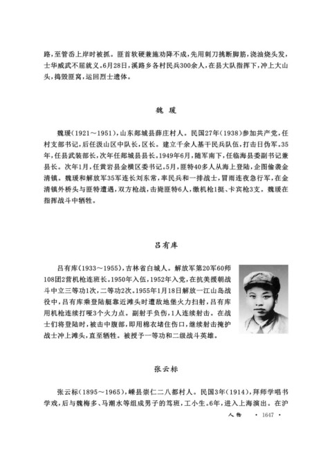 魏瑗(1921~1951),山东郯城县薛庄村人。民国27年(1938)参加共产党,任