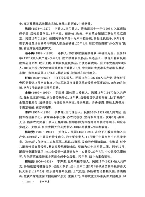 任畴(1898~1930) 三门石头岙人。民国16年(1927)加入共产党,次年任亭