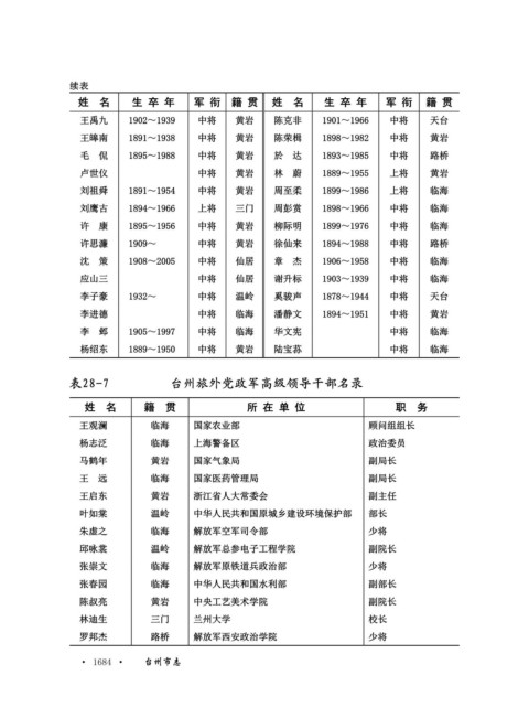 表28-7 台州旅外党政军高级领导干部名录