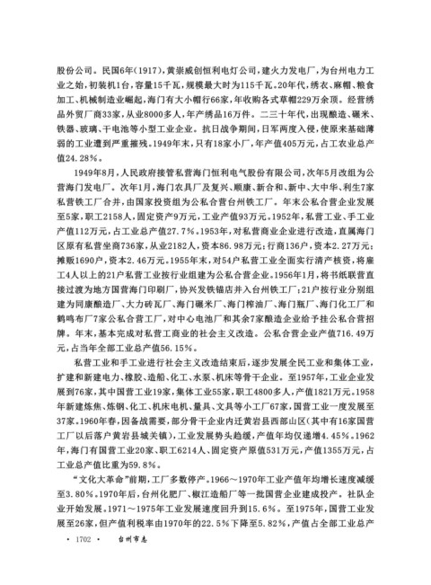 至3.80%。1970年后,台州化肥厂、椒江造船厂等一批国营企业建成投产。社队企