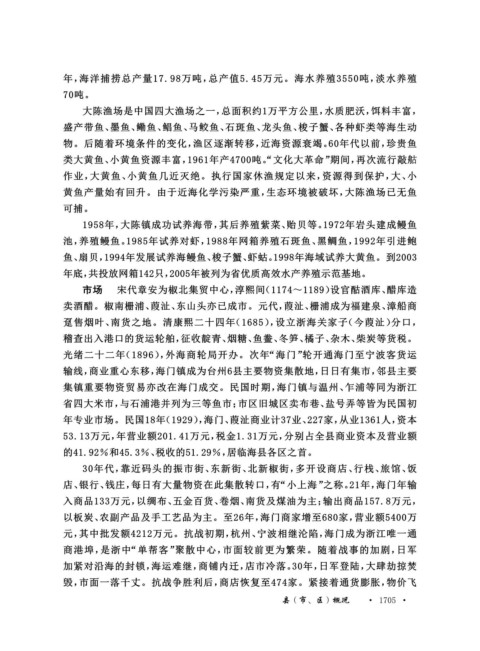 省四大米市,与石浦港并列为三等鱼市;市区旧城区卖布巷、盐号弄等皆为民国初