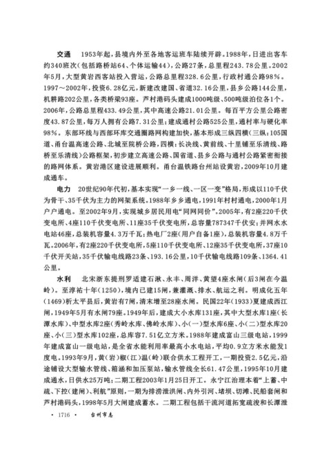 的路网体系。黄岩港区建设进展顺利。甬台温铁路台州站设黄岩,2009年10月建