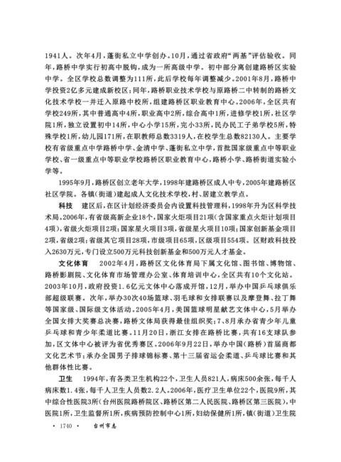 中学。全区学校总数调整为111所,此后学校每年调整减少。2001年8月,路桥中