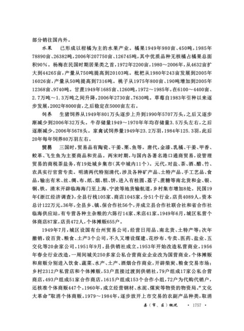 铜、铁。清末开辟临海海门至上海、宁波等地货输航道,乡村集市增加8处。民国19