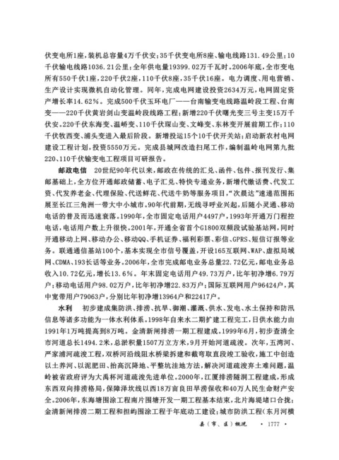 水利 初步建成集防洪、排涝、抗旱、御潮、灌溉、供水、发电、水土保持和防汛