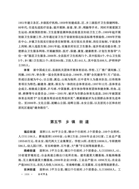 体育 新中国成立后,县级机关团体开展体育活动,学校、工厂推广课间操、工