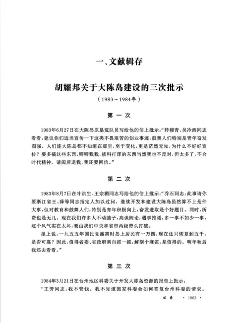 1984年3月21日在台州地区科委关于开发大陈岛资源的报告上批示: