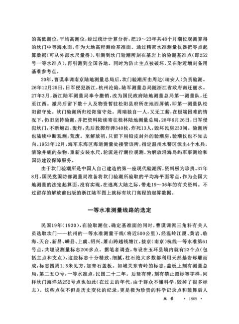 员选取坎门——杭州的一等水准测量干线(将近500公里),经温岭江厦、黄岩、临