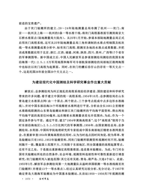 带来的许多问题,着手建立中国的统一高程系统。1954年10月,总参测绘局在山东