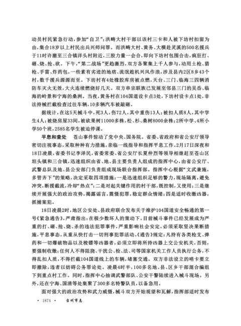 号《紧急通告》,严肃指出:在极少数坏人的策动下,目前械斗事件已经发展成为严