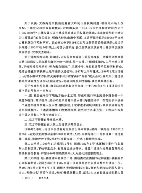 以维持。1990年3月16日晚上,处理小组和地、县工作队在灵溪召开山林法律法规政