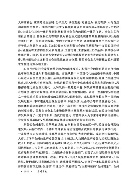 3、台州经济社会发展到特定阶段的现实要求。和谐社会的提出是因为台州的