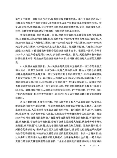 超过220O美元,才能说建设和谐社会的经济基础基本完备。根据这一指标,台州市