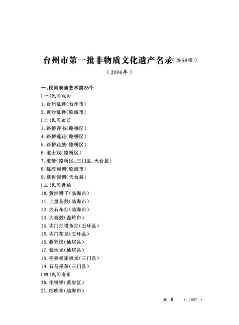 台州市第一批非物质文化遗产名录