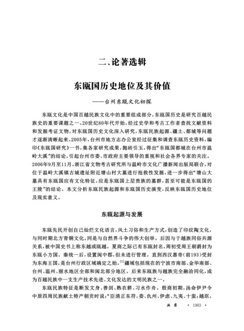 王陵”的结论。本文分析东瓯民族起源和东瓯国历史演变,反映东瓯国历史地位