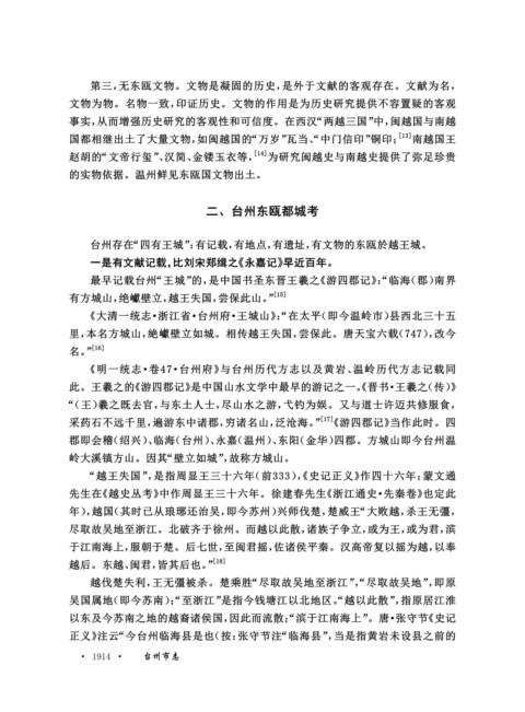 第三,无东瓯文物。文物是凝固的历史,是外于文献的客观存在。文献为名,