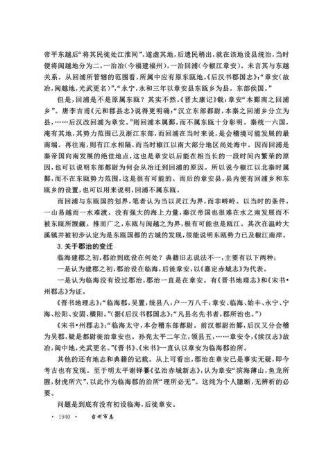 一是认为临海没有设过郡治,郡治一直是在章安。有《晋书地理志》和《宋书•
