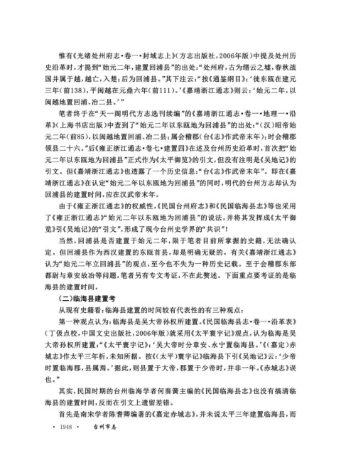 了《雍正浙江通志》“始元二年以东瓯地为回浦县”的说法,并将其发挥成《太平御