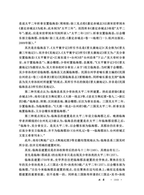 首先是临海(郡或县)的出现并非只是出现吴少帝孙亮的太平二年(257)。