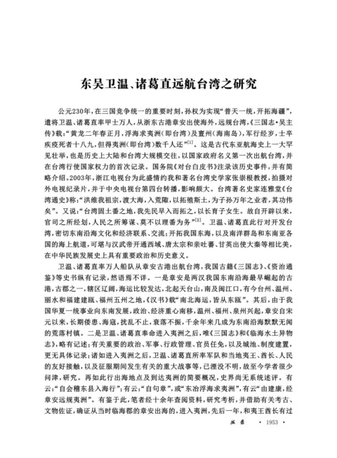 东吴卫温、诸葛直远航台湾之研究
