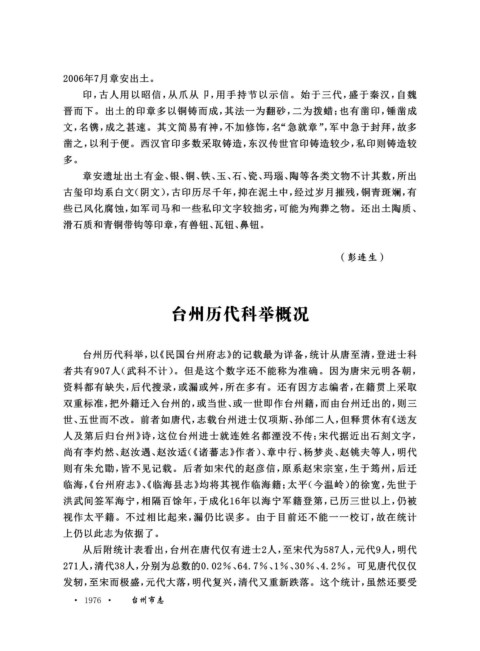 台州历代科举,以《民国台州府志》的记载最为详备,统计从唐至清,登进士科