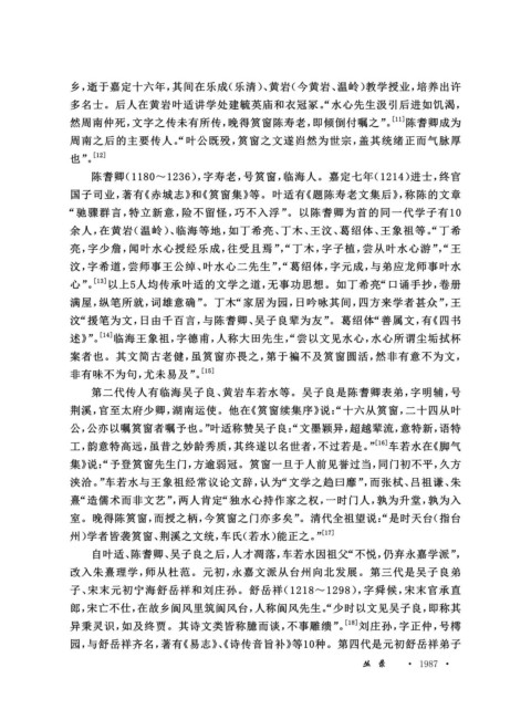 自叶适、陈耆卿、吴子良之后,人才凋落,车若水因祖父“不悦,仍弃永嘉学派”,