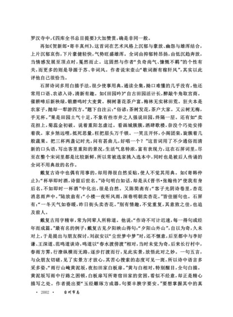 戴复古诗中也偶有用事的,却用得很自然妥贴,使人不觉其用典。如《寄韩仲