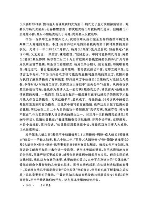 质上追认卖妻契约的作法。 黄岩县知县未追究鲍娄氏与杨周氏卖女(儿媳)的刑