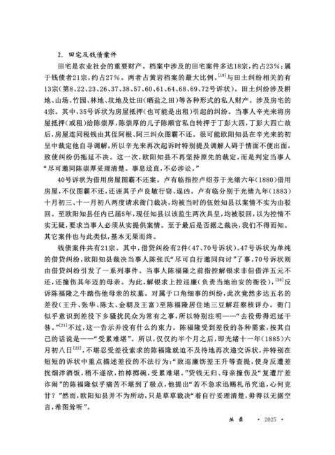 于钱债者21宗,约占27%。两者占黄岩档案的最大比例。 与田土纠纷相关的有