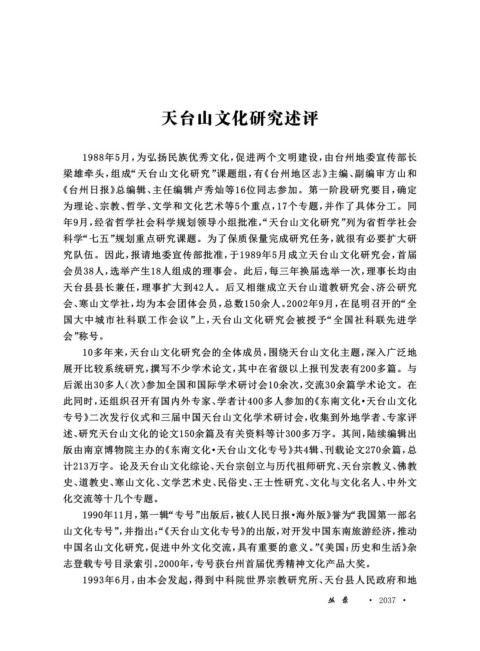 究队伍。因此,报请地委宣传部批准,于1989年5月成立天台山文化研究会,首届