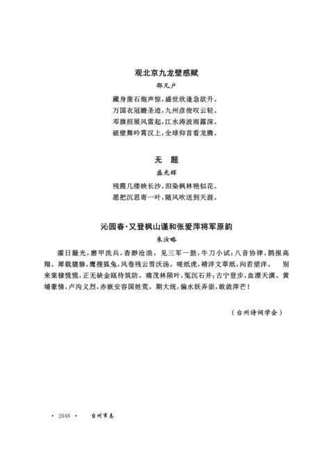 埔豪情,卢沟义烈,赤嵌安容国姓荒。期大统,偏水妖弄崇,敢敛萍芒!