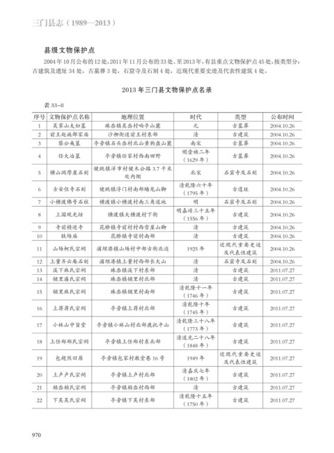 2013 年三门县文物保护点名录