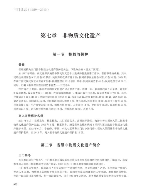 汇编乡镇卷,收录普查项目 1878 项,在乡镇卷的基础上,集成汇编三门县卷,收录普查项目 702 项,其中,