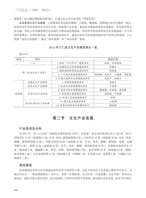 至 2013 年,经三门文化广电新闻出版管理部门许可(含备案)的文化经营单位共计 263 家。其中,