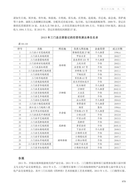 8 三门玲华越剧团 军民路 63 号 个体 2013.3