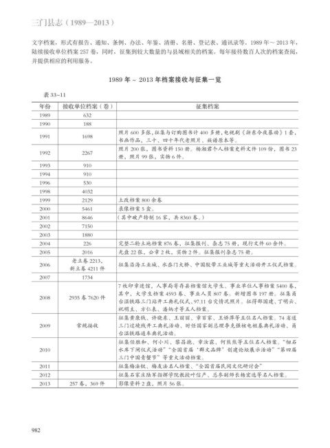 1989 年~ 2013 年档案接收与征集一览
