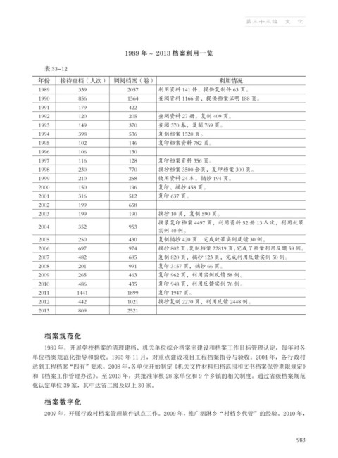 1989 年~ 2013 档案利用一览