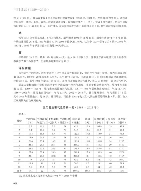 三门县主要气象要素一览(1969 ~ 2013 年)