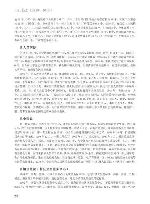 投入使用。2010 年 5 月,城区医疗资源整合,县人民医院、县中医院合并,使用三门县人民医院(中医院)