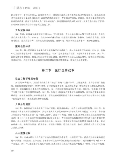 1993 年,在各级医疗卫生单位全面推行责、权、利相结合的综合目标责任制。2001 年,完成 19 所乡镇
