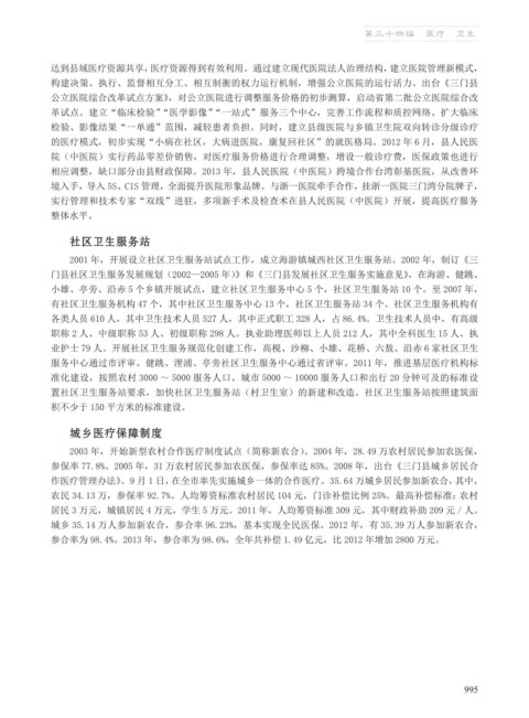 参保率 77.8%。2005 年,31 万农村居民参加农医保,参保率达 85%。2008 年,出台《三门县城乡居民合