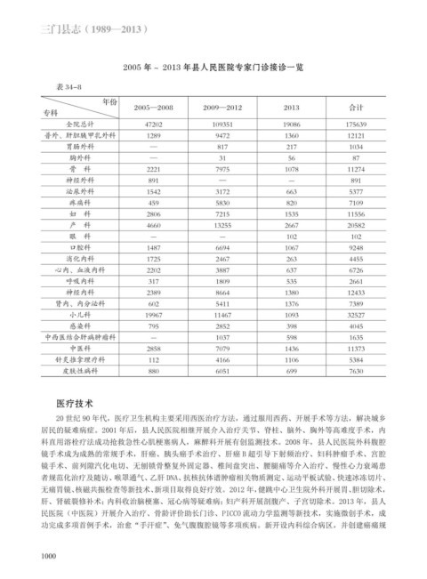 居民的疑难病症。2001 年后,县人民医院相继开展介入治疗关节、脊柱、脑外、胸外等高难度手术,内