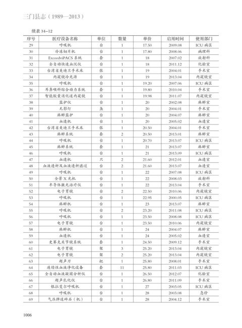 序号 医疗设备名称 单位 数量 单价 启用时间 使用部门