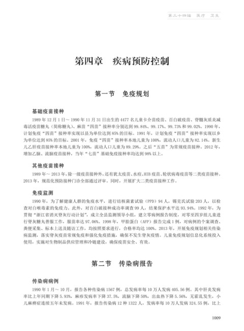 计划免疫“四苗”接种率实现以县为单位达到 85% 的目标。1991 年,计划免疫“四苗”接种率实现以乡