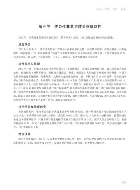 2003 年,国内发生传染性非典型肺炎(简称非典)疫情,三门县迅速实施疫情防控措施。